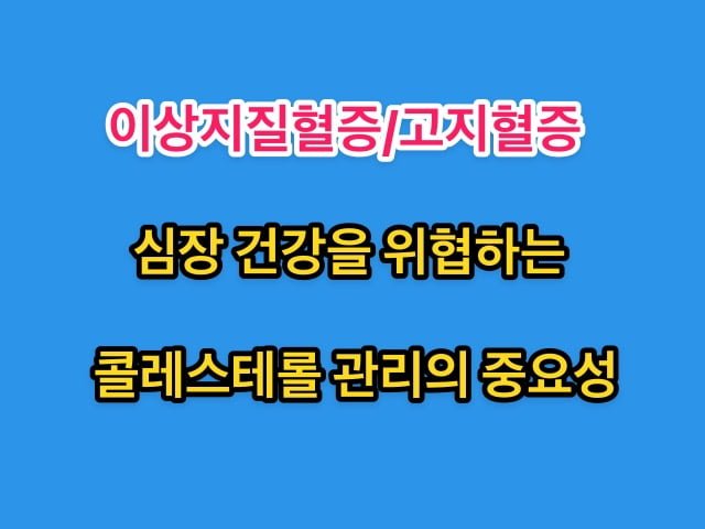 이상지질혈증은 심장 건강을 위협하는 요소입니다. 지방은 에너지원으로 중요하지만, 너무 많은 콜레스테롤과 중성지방이 혈액 속에 농축되면 LDL 콜레스테롤은 혈관 벽에 쌓여 동맥경화를 유발할 수 있는데, 이는 심장 질환과 뇌졸중과 같은 심혈관 질환의 주요 원인입니다.